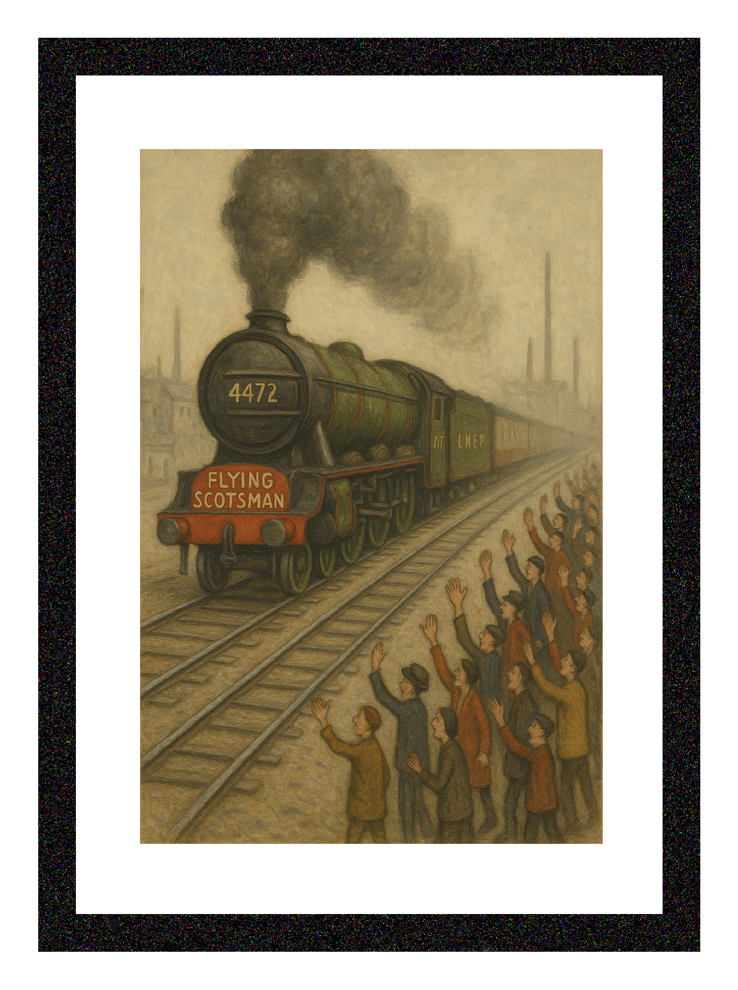 The Flying Scotsman Locomotive - A4 Size Giclée Art Print. Lowry Style Art Print. Available Framed and Unframed.