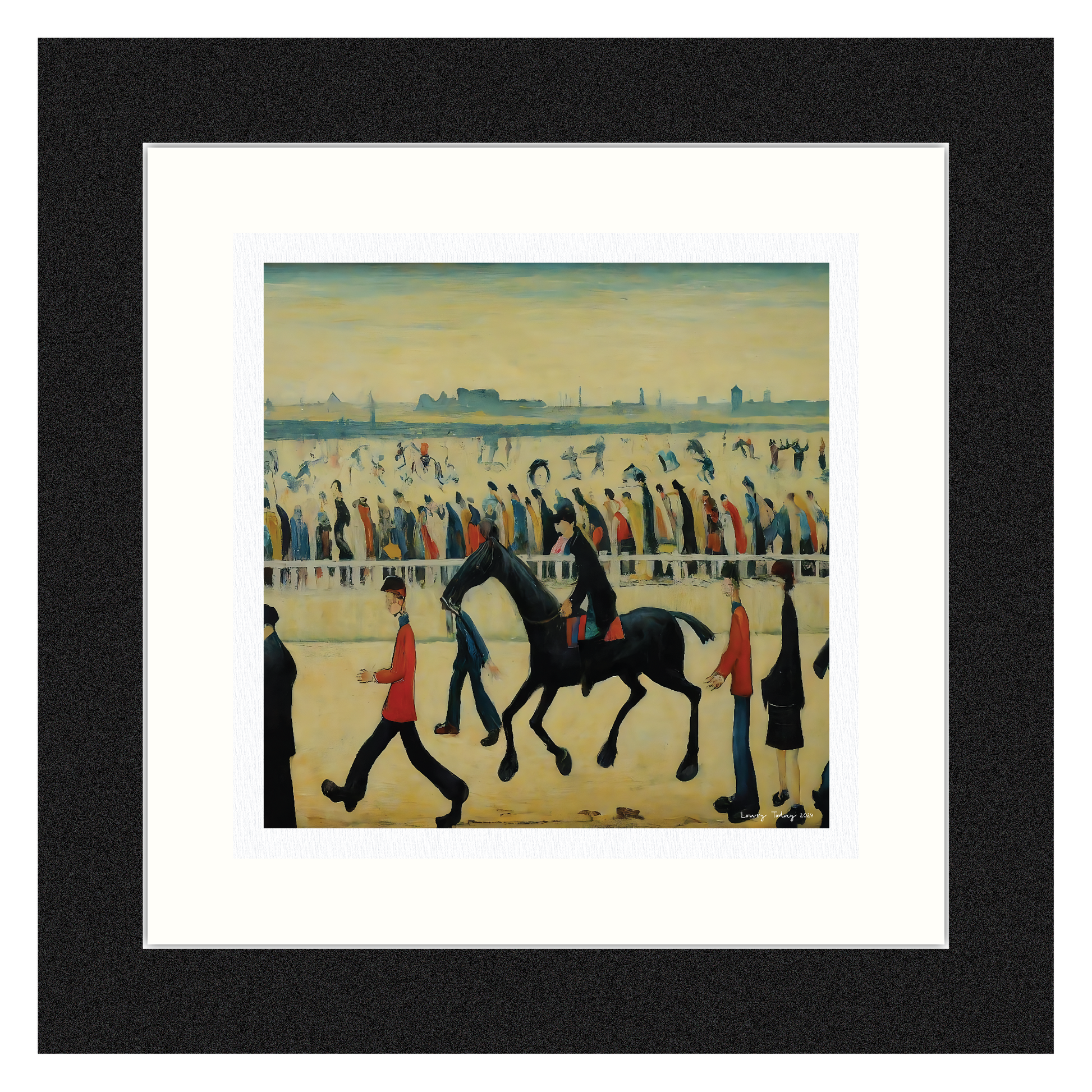 At The Races Horseracing Lowry Style Giclée Art Print. Available Mounted/Framed or Unframed.