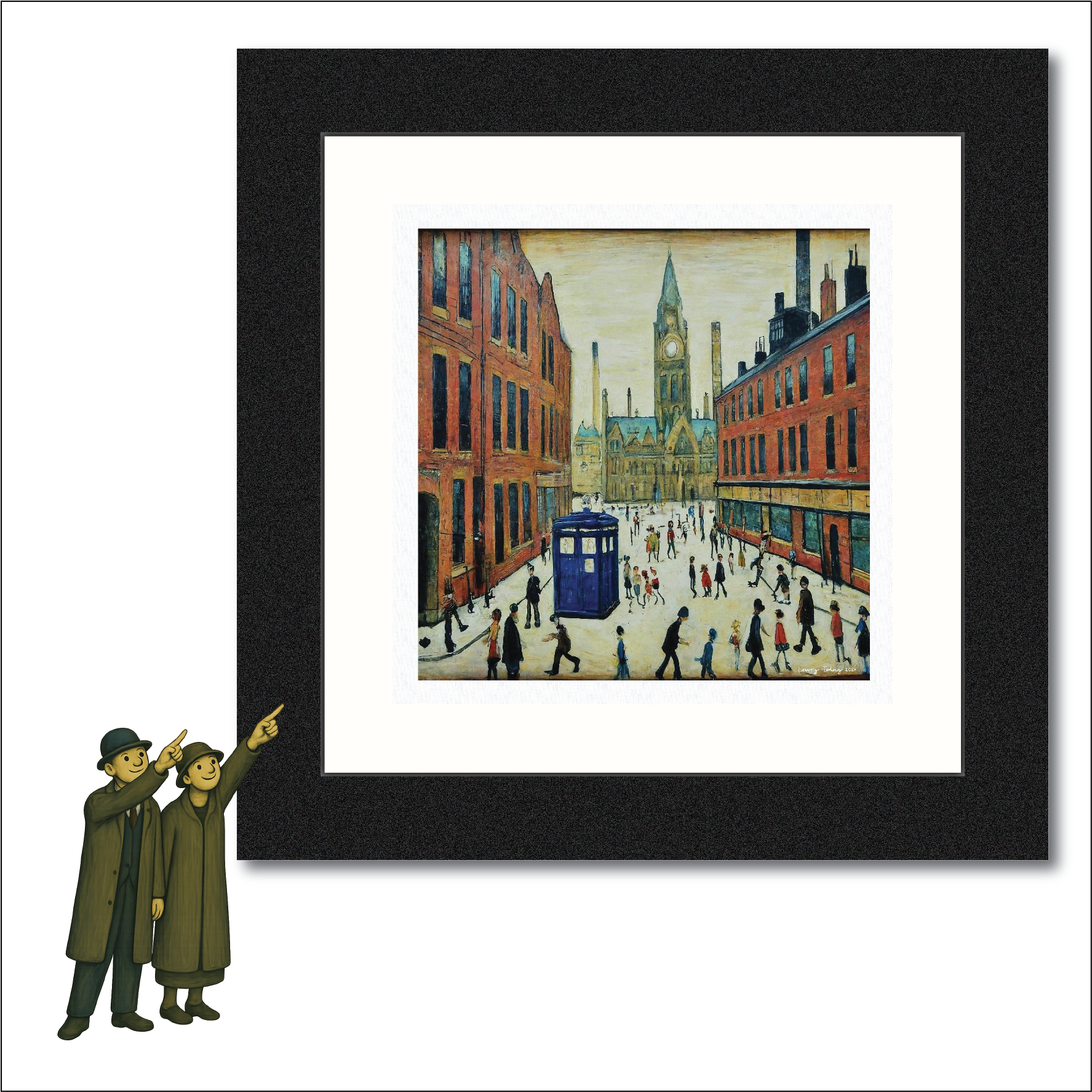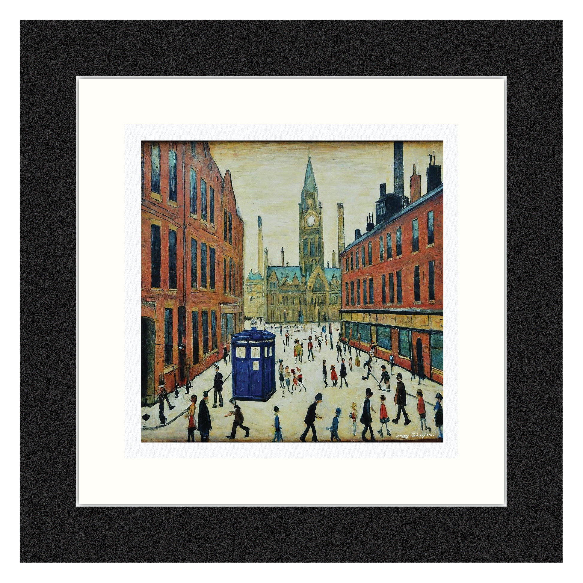The Doctor Who Comes To Town - Lowry Style Giclée Art Print. Available Mounted/Framed or Unframed